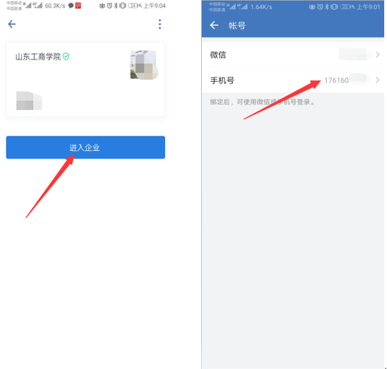 (4)最后,点击“进入企业微信“,查看手机号已成功更换。